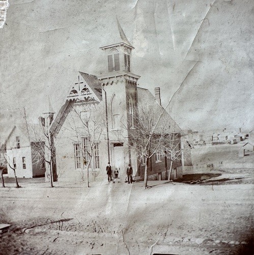 The Christian Church was founded in 1876, and the original building was built in 1877.